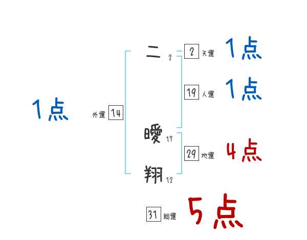 二曖翔さんの画数の鑑定結果