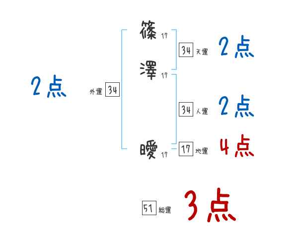 篠澤曖さんの画数の鑑定結果