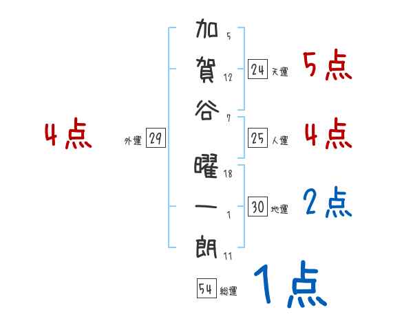 加賀谷曜一朗さんの画数の鑑定結果
