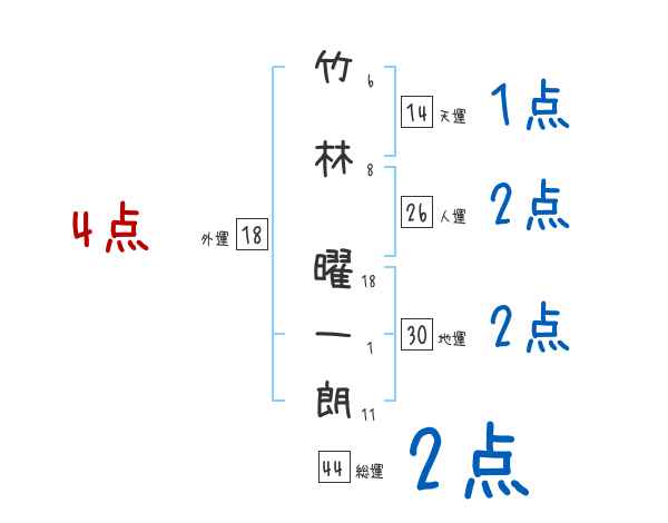 天運![]() | 竹林曜一朗さんの天運は14画の1つ星!人に対して優しいがストレスを溜め込みがち。人間関係のトラブルを避けるよう気をつけましょう。 家系が持つ宿命的な運勢を表します。祖先から受け継いだ苗字ですので自分の力が及びません。家柄を象徴します。 |