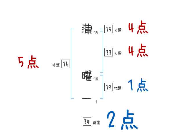 蒲曜一さんの画数の鑑定結果