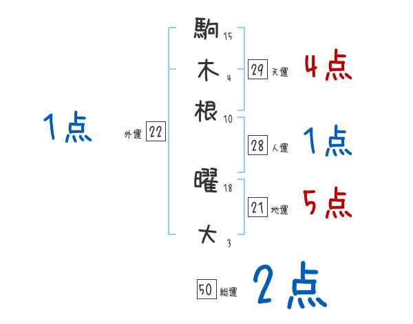 天運![]() | 駒木根曜大さんの天運は29画の4つ星!完全主義で才能がある。厳格な心の持ち主。 家系が持つ宿命的な運勢を表します。祖先から受け継いだ苗字ですので自分の力が及びません。家柄を象徴します。 |