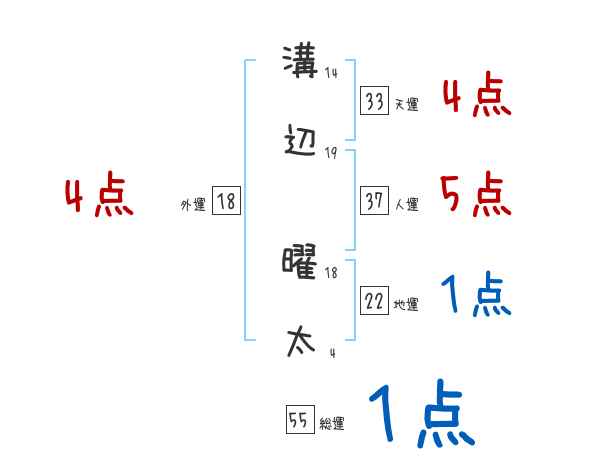溝辺曜太さんの画数の鑑定結果