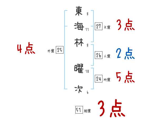総運![]() | 東海林曜次さんの総運は51画の3つ星!変化が激しく、危険に注意。堅実な性格。 あなたの人生を表す1番重要な運勢です。生涯を通じて影響する総合運となり、主に50歳以降の晩年期に影響を及ぼします。 |