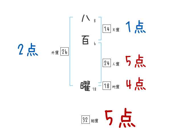 八百曜さんの画数の鑑定結果