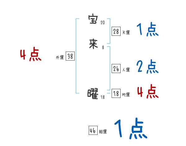 宝来曜さんの画数の鑑定結果