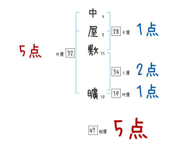外運![]() | 中屋敷曠さんの外運は32画の5つ星!柔軟性があり成功する。チャンスが多く金運が良い。 生活面を象徴する運勢です。外部から受ける影響力を表し、結婚運、家庭運や職場、環境への順応性を表します。 |