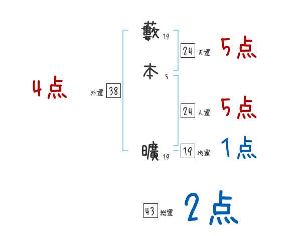 藪本曠さんの画数の鑑定結果