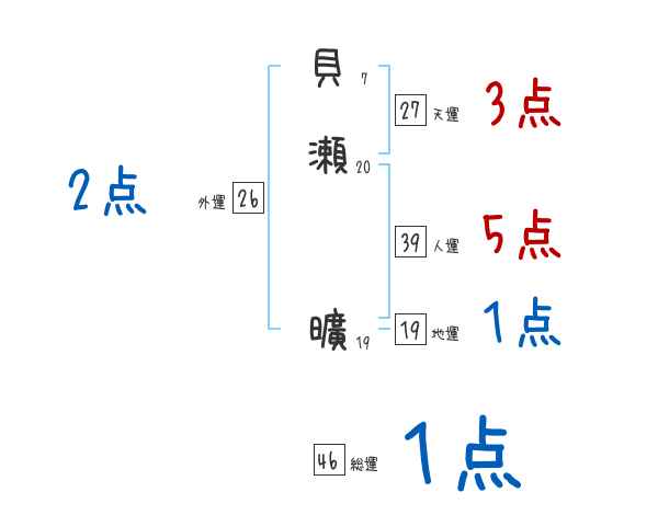 貝瀬曠さんの画数の鑑定結果