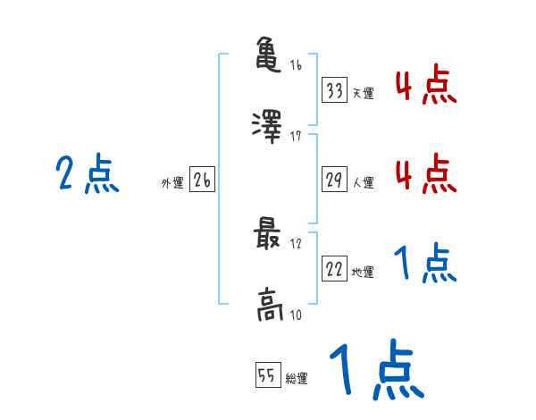 亀澤最高さんの画数の鑑定結果