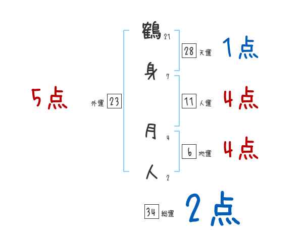 鶴身月人さんの画数の鑑定結果