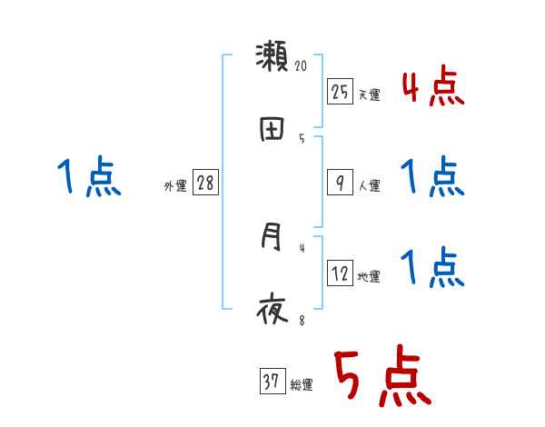 瀬田月夜さんの画数の鑑定結果
