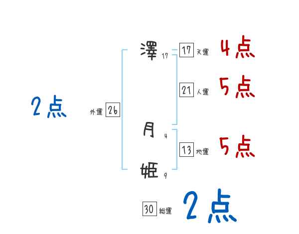 澤月姫さんの画数の鑑定結果