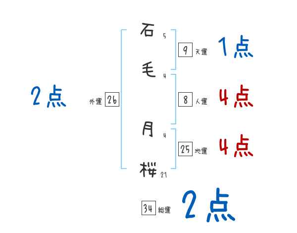 石毛月桜さんの画数の鑑定結果