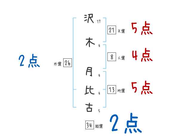 天運![]() | 沢木月比古さんの天運は21画の5つ星!統率力がある。独立し成功する。名誉を手に入れる。 家系が持つ宿命的な運勢を表します。祖先から受け継いだ苗字ですので自分の力が及びません。家柄を象徴します。 |