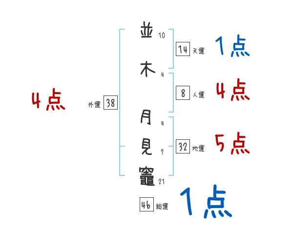 天運![]() | 並木月見竈さんの天運は14画の1つ星!人に対して優しいがストレスを溜め込みがち。人間関係のトラブルを避けるよう気をつけましょう。 家系が持つ宿命的な運勢を表します。祖先から受け継いだ苗字ですので自分の力が及びません。家柄を象徴します。 |