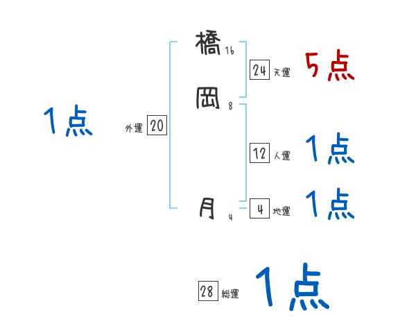 橋岡月さんの画数の鑑定結果