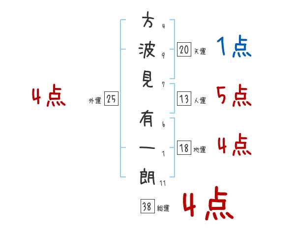 外運![]() | 方波見有一朗さんの外運は25画の4つ星!個性があり才能があふれる。強運の持ち主で発展する。 生活面を象徴する運勢です。外部から受ける影響力を表し、結婚運、家庭運や職場、環境への順応性を表します。 |