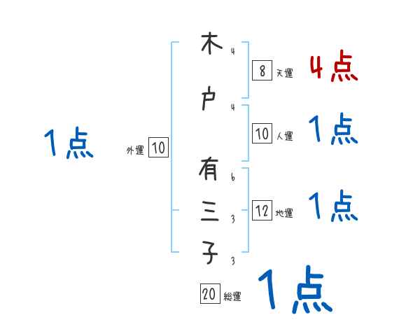 外運![]() | 木戸有三子さんの外運は10画の1つ星!不安を感じやすい傾向。ストレスを抱えないように注意しましょう。 生活面を象徴する運勢です。外部から受ける影響力を表し、結婚運、家庭運や職場、環境への順応性を表します。 |