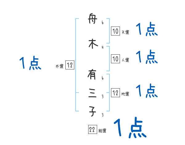 天運![]() | 舟木有三子さんの天運は10画の1つ星!不安を感じやすい傾向。ストレスを抱えないように注意しましょう。 家系が持つ宿命的な運勢を表します。祖先から受け継いだ苗字ですので自分の力が及びません。家柄を象徴します。 |