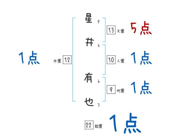 天運![]() | 星井有也さんの天運は13画の5つ星!才能に恵まれ人気がある。名声を手に入れる。円満な人生。 家系が持つ宿命的な運勢を表します。祖先から受け継いだ苗字ですので自分の力が及びません。家柄を象徴します。 |