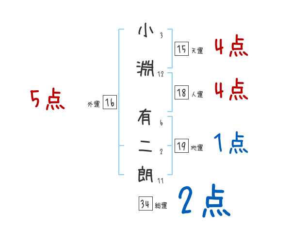 小淵有二朗さんの画数の鑑定結果