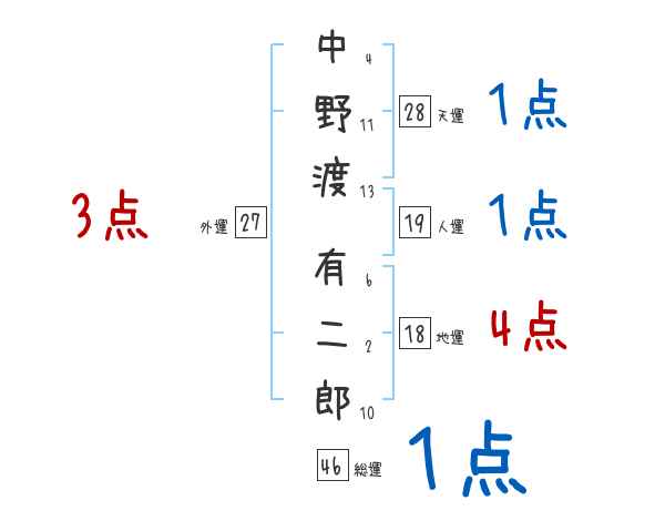 中野渡有二郎さんの画数の鑑定結果