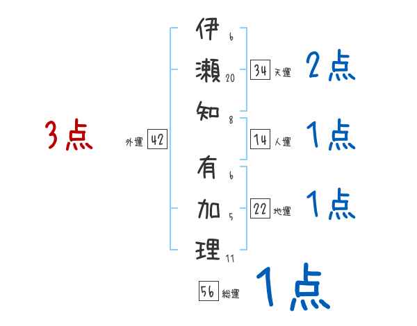 伊瀬知有加理さんの画数の鑑定結果