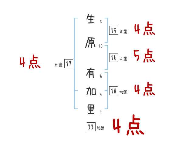生原有加里さんの画数の鑑定結果