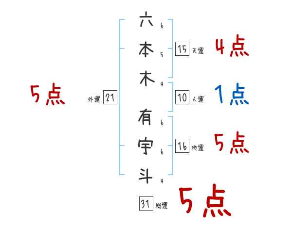 外運![]() | 六本木有宇斗さんの外運は21画の5つ星!統率力がある。独立し成功する。名誉を手に入れる。 生活面を象徴する運勢です。外部から受ける影響力を表し、結婚運、家庭運や職場、環境への順応性を表します。 |