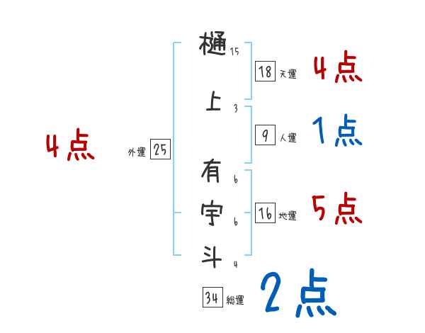 総運![]() | 樋上有宇斗さんの総運は34画の2つ星!独創性に優れるが、自尊心が強く災難に注意しましょう。 あなたの人生を表す1番重要な運勢です。生涯を通じて影響する総合運となり、主に50歳以降の晩年期に影響を及ぼします。 |