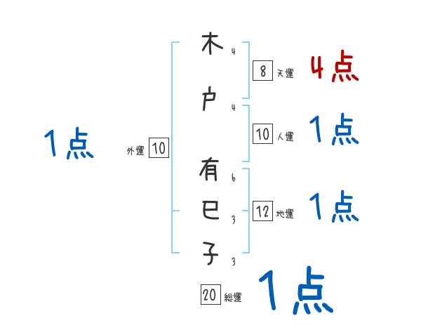 天運![]() | 木戸有巳子さんの天運は8画の4つ星!勤勉家。根気強く努力し成功する。忍耐力がある。 家系が持つ宿命的な運勢を表します。祖先から受け継いだ苗字ですので自分の力が及びません。家柄を象徴します。 |