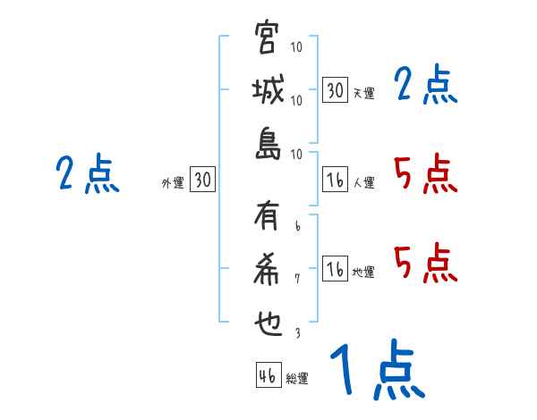 宮城島有希也さんの画数の鑑定結果