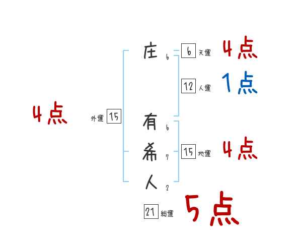 庄有希人さんの画数の鑑定結果