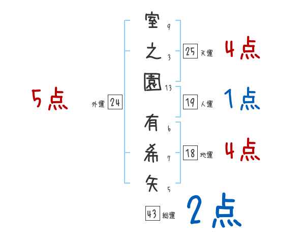 室之園有希矢さんの画数の鑑定結果