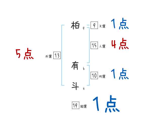 柏有斗さんの画数の鑑定結果