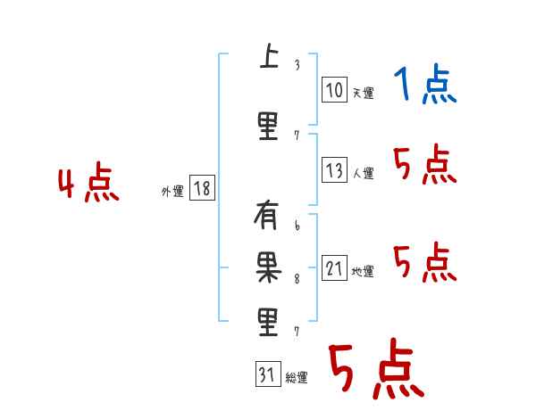 上里有果里さんの総運は31画の5つ星