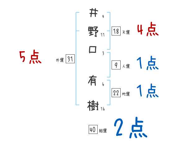 井野口有樹さんの画数の鑑定結果