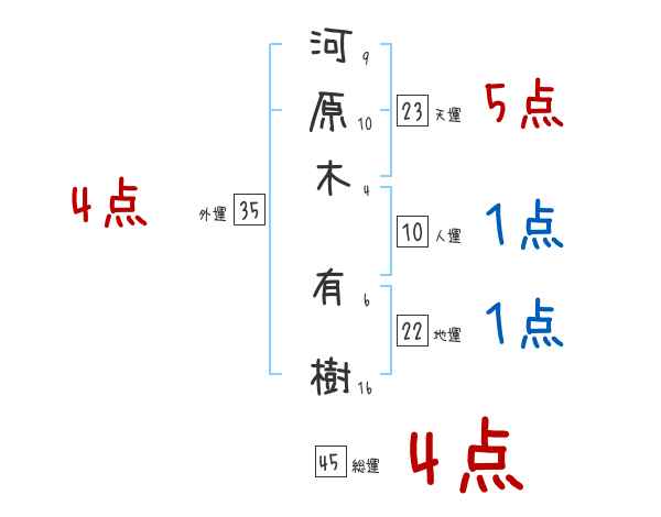 河原木有樹さんの画数の鑑定結果