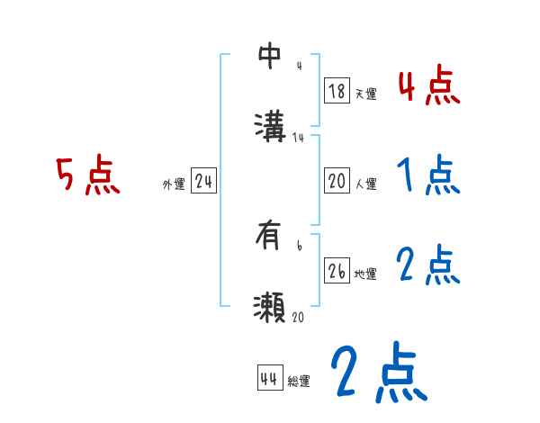 中溝有瀬さんの画数の鑑定結果