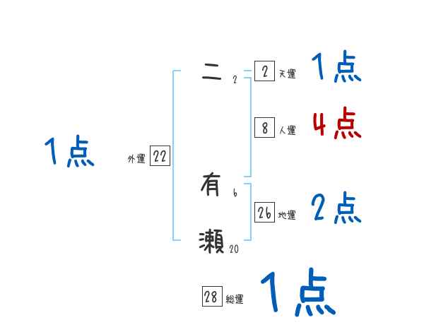 二有瀬さんの画数の鑑定結果