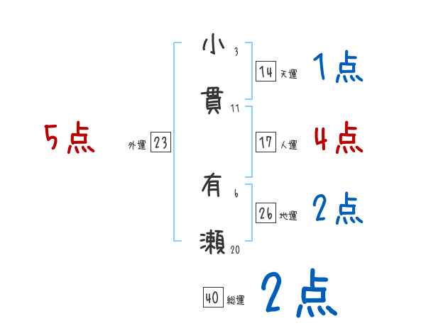 小貫有瀬さんの画数の鑑定結果