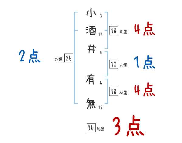 総運![]() | 小酒井有無さんの総運は36画の3つ星!先見性が豊かです。多少神経質で苦労することも。 あなたの人生を表す1番重要な運勢です。生涯を通じて影響する総合運となり、主に50歳以降の晩年期に影響を及ぼします。 |