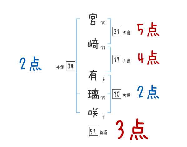宮﨑有璃咲さんの画数の鑑定結果