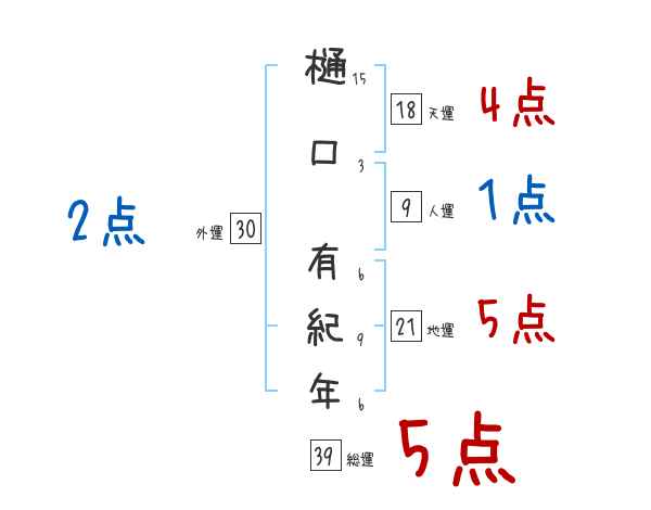 樋口有紀年さんの画数の鑑定結果