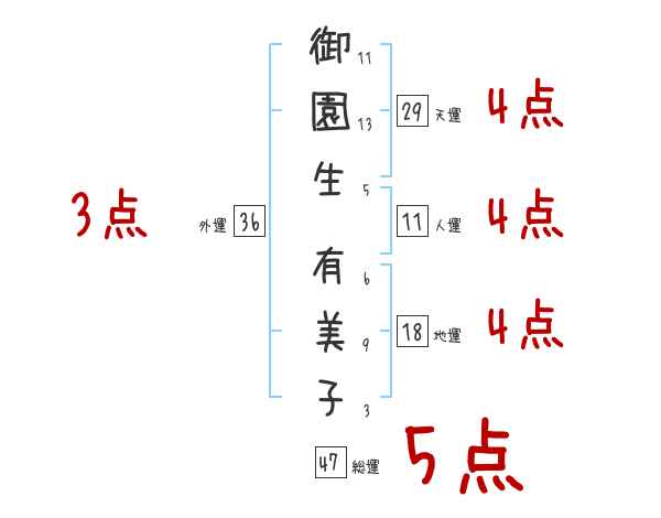 外運![]() | 御園生有美子さんの外運は36画の3つ星!先見性が豊かです。多少神経質で苦労することも。 生活面を象徴する運勢です。外部から受ける影響力を表し、結婚運、家庭運や職場、環境への順応性を表します。 |