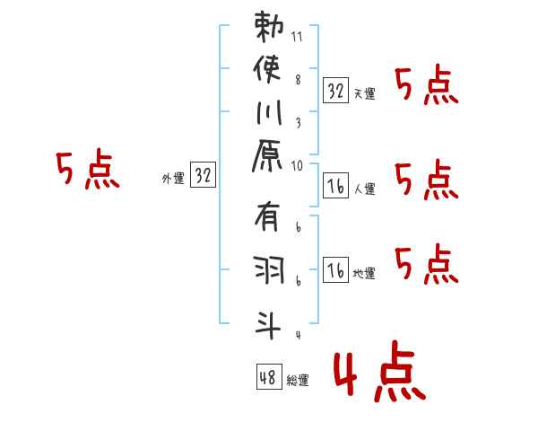 天運![]() | 勅使川原有羽斗さんの天運は32画の5つ星!柔軟性があり成功する。チャンスが多く金運が良い。 家系が持つ宿命的な運勢を表します。祖先から受け継いだ苗字ですので自分の力が及びません。家柄を象徴します。 |