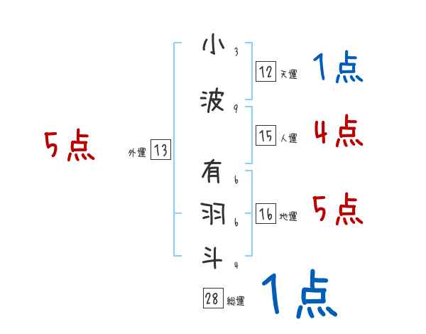 小波有羽斗さんの画数の鑑定結果