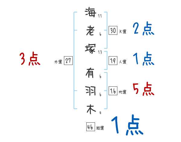 海老塚有羽木さんの画数の鑑定結果