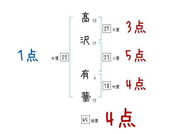 髙沢有華さんの画数の鑑定結果
